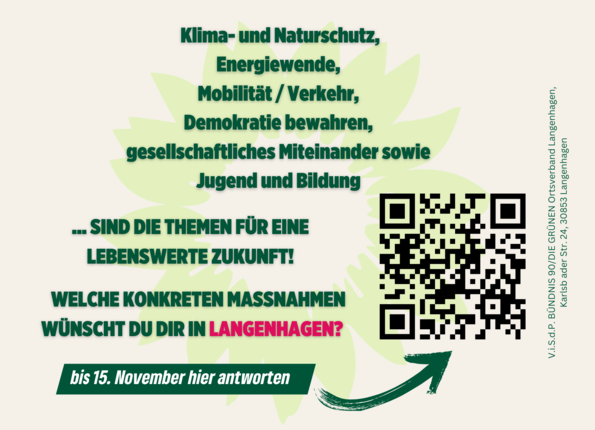 Wir möchten von euch wissen, welche konkreten Maßnahmen ihr euch in eurem Ortsteil, in Langenhagen oder auch in der Region Hannover wünscht.