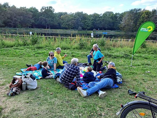 Die Familien-Fahrradtouren im Juni und Juli haben so viel Spaß gemacht, dass wir sie auch im September nochmal wiederholt haben. Nach dem Treffen am Bienen-Spielplatz im Eichenpark sind wir in ganz gemächlichem Tempo und bei schönstem Wetter bis zum ca. 6 km entfernten Waldsee in Krähenwinkel geradelt.