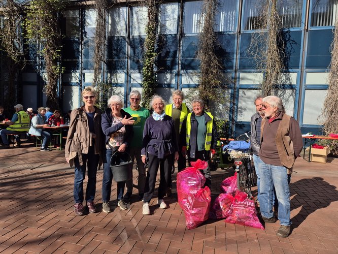 Am Frühjahrsputz in der Kernstadt war das "Grün-Team" mit 8 Mitgliedern gut vertreten. Positive Kommentare von Passanten bis zum Überreichen eines Schokoriegels zur Stärkung "versüßten" die Arbeit etwas. Besonderes Lob gab es für das mühsamme Aufsammeln von zahlreichen Kippen. "Sie tun ein gutes Werk. Eine Kippe verunreinigt 60 m³ Grundwasser" lautete der Kommentar einer Passantin. Nach 2 Stunden Stadtputz waren die Säcke gut gefüllt und wurden im Rathausinnenhof abgegeben.
